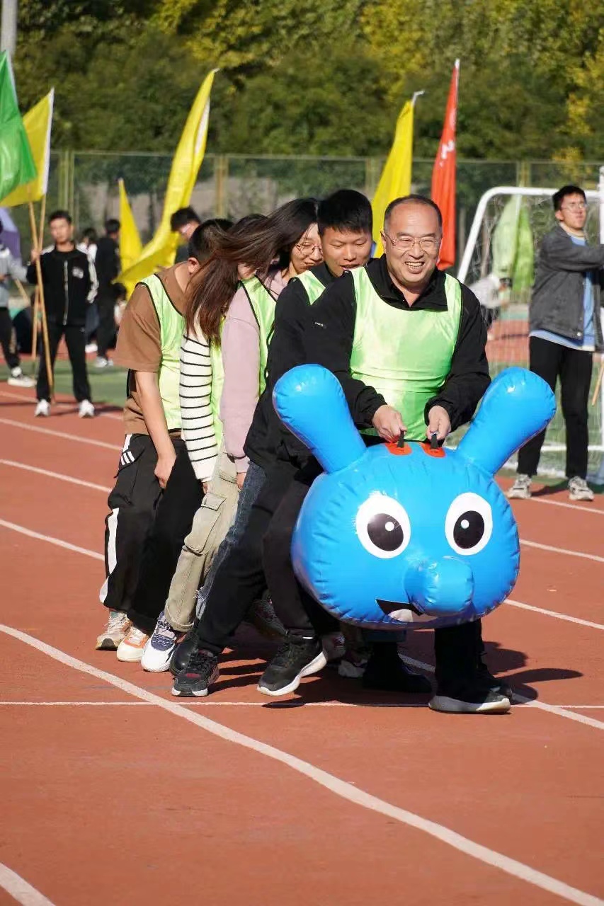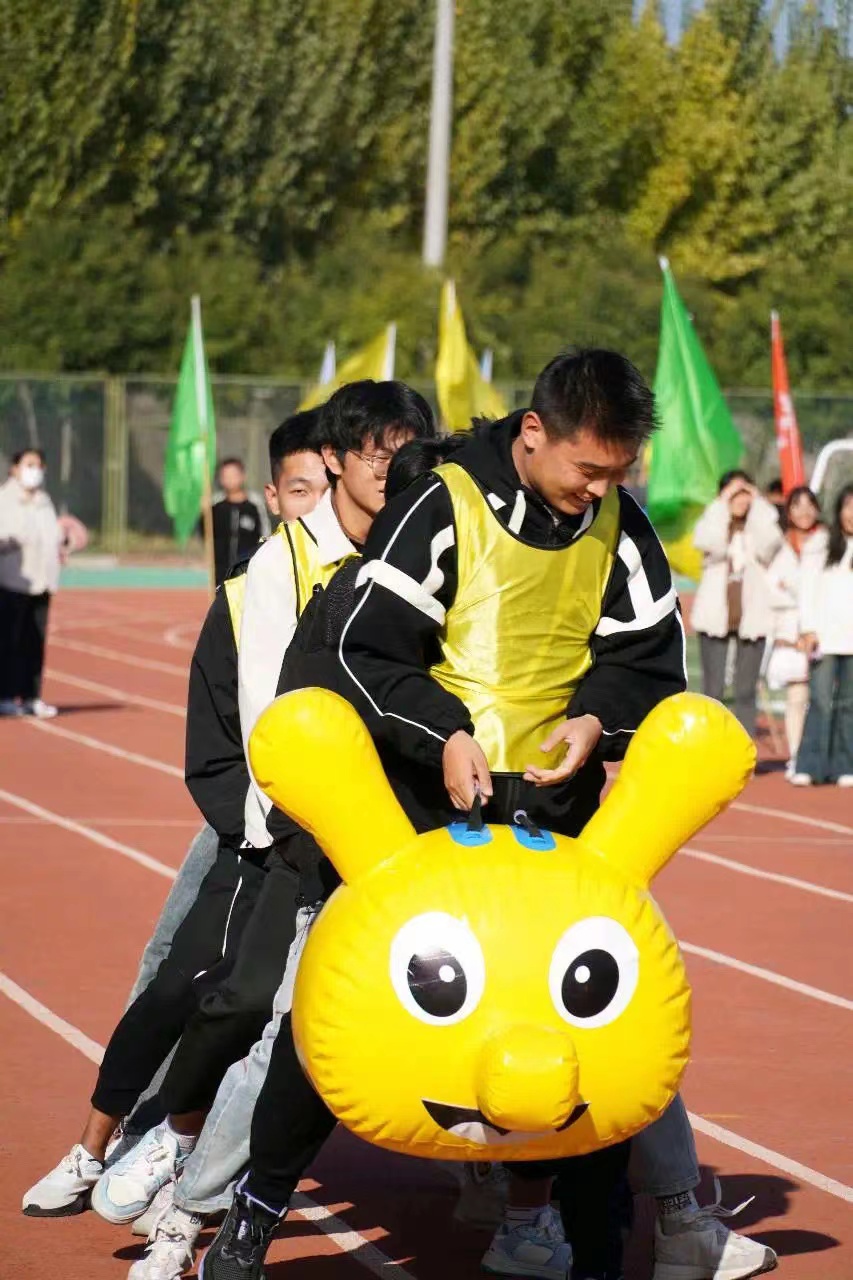 随后,举行了师生赛项疯狂毛毛虫。伴随着一声哨响,校园热情瞬间燃爆,队员们双手紧握把手,高喊着响亮的口号,齐心协力奔向终点,观众们奋力加油,欢呼声和呐喊声响彻云霄。在宜人的秋日中,大家释放着热情、飞扬着喜悦,充分展示着我院师生团结奋进、健康向上的青春面貌。紧张的观众、忙碌的裁判、拼搏的运动员,都成为校园内一道道亮丽的风景线。