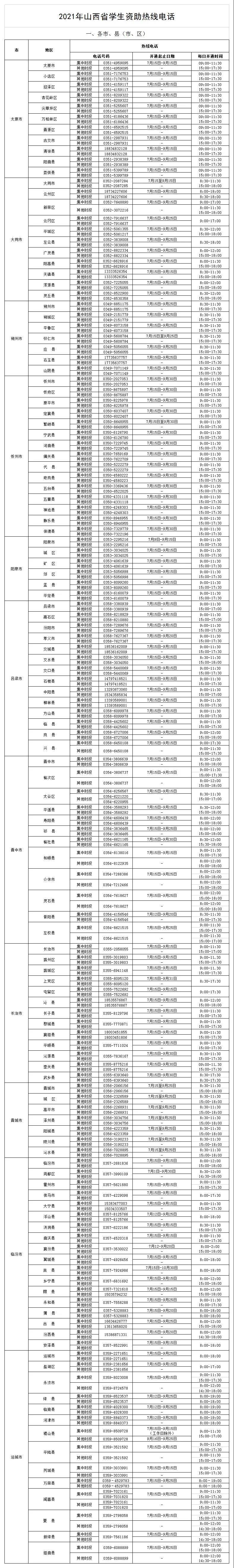 为帮助广大学生和家长及时准确了解学生资助政策,更便捷地申请获得相应资助,我院将《2021年山西省学生资助热线电话》公布如下。