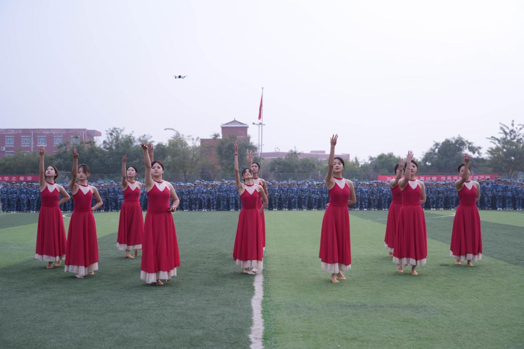 上午9时,全场高唱国歌,随着五星红旗的冉冉升起,2024级新生军训成果展示正式拉开帷幕。参加军训的新生军姿挺拔、激情满怀,展示了分列式、队列队形展示、节目表演、千人军体拳等多个项目。新生们的每个动作都透出自信与力量,彰显山管学子奋发向前的姿态。