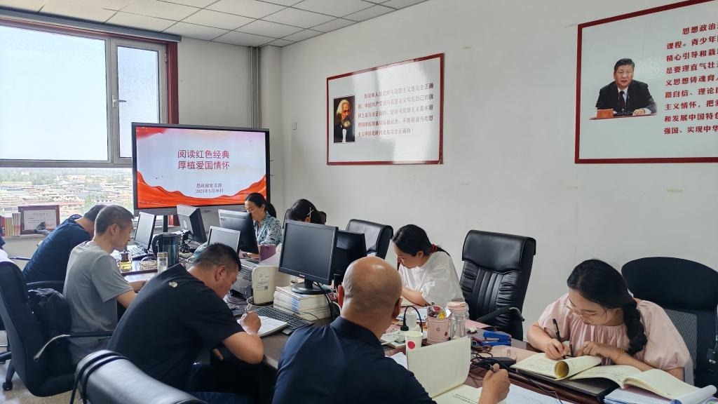 思政部组织全体教师于综合楼1108开展阅读分享交流会。老师们怀揣着对祖国的敬佩和热爱之情,在红色读物中重温党的光辉历程,汲取文化养分,积蓄精神力量。老师们纷纷表示将以这场红色诵读分享之旅为起点,勤学、善思、笃行,将读书与工作、生活紧密结合,不断提升政治理论水平和综合能力素养,让学习推动红色基因赓续传承,为党的奋进新征程注入强大精神力量。