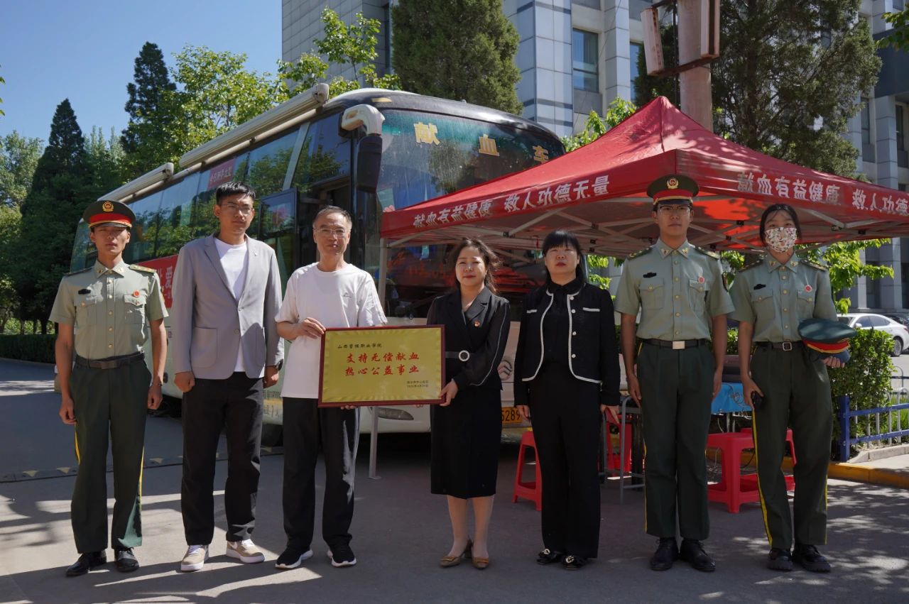 活动期间,临汾市中心血站副站长孙亚琴向我院赠送了“支持无偿献血,热心公益事业”牌匾,向学院和所有参与无偿献血的师生表示感谢和敬意。